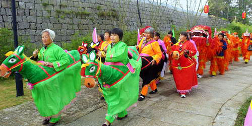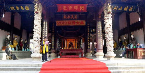 2012年虞舜文化旅游节在王坛镇舜王庙景区热闹开场,我县非遗馆专门组织20名热心市民一起来到舜王庙,体验传统庙会文化,领略独特民俗魅力。