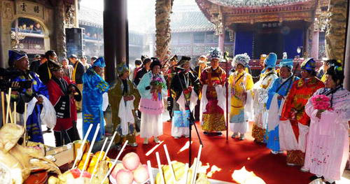 位于绍兴县王坛镇的舜王庙于南宋时期建成,是绍兴地区祭祀舜帝的重要场所。每年农历九月廿三至九月廿八左右绍兴民间便会在此举办大型庙会祭祀活动,以庆祝舜帝诞辰,感念舜帝功德。2007年,绍兴舜王庙会被列入浙江省非物质文化遗产名录。今年的舜王庙会于11月6日(农历九月廿三)正式开始。在此次庙会体验活动中,大家兴致勃勃地参观了舜王庙内布置的绍兴县非物质文化遗产展览及新旧二十四孝图片展览,领略了我县非遗及虞舜孝文化的独特魅力;并认真观看了舜王庙会祭舜大典,包括祭舜、社戏表演、舞龙、舞狮、宣卷等一系列精彩纷呈的庙会表演,原汁原味的“舜王巡会”活动让人叹为观止。在祭舜典礼后,大家还游历了舜王庙景区,参观了虞舜史迹展览区,观看了民间传统手工艺表演。